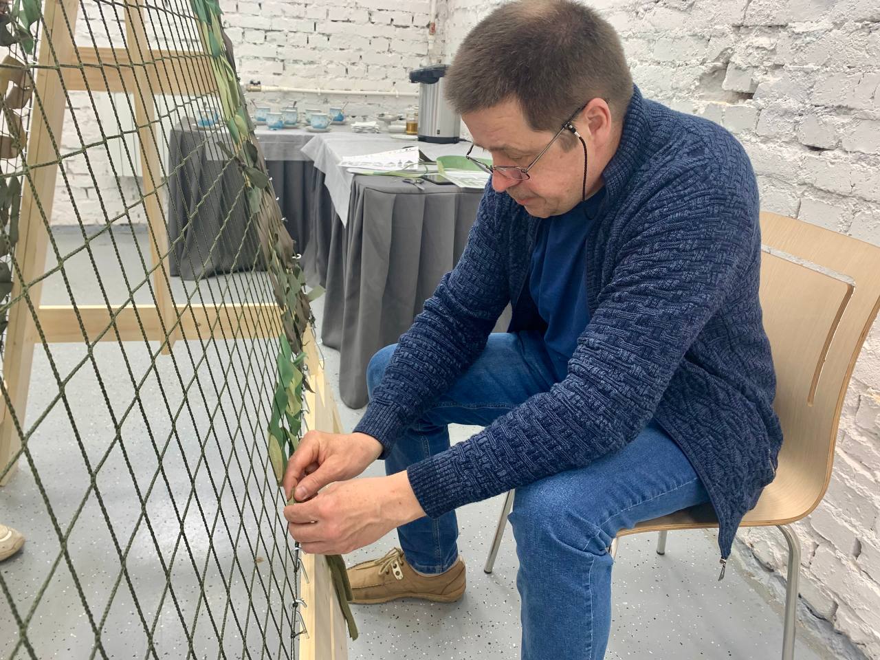 11 апреля в Общественной палате Сергиево-Городского округа совместно с волонтерским движением «Золотые руки Ангела» прошло первое занятие по плетению маскировочных сетей для российских военнослужащих.