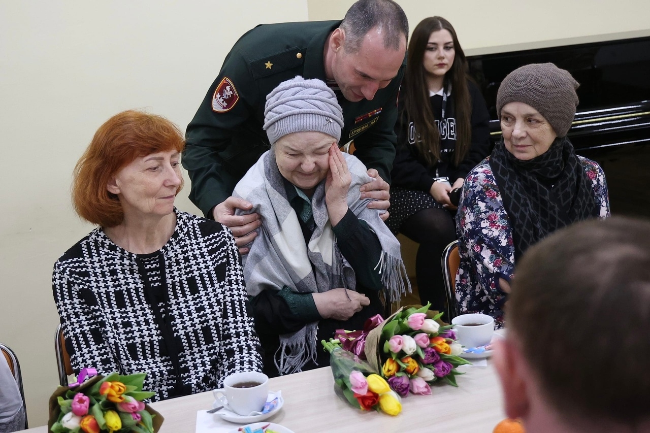 В преддверии 8 Марта женщинам вручили цветы и обсудили с ними вопросы поддержки семей участников спецоперации.