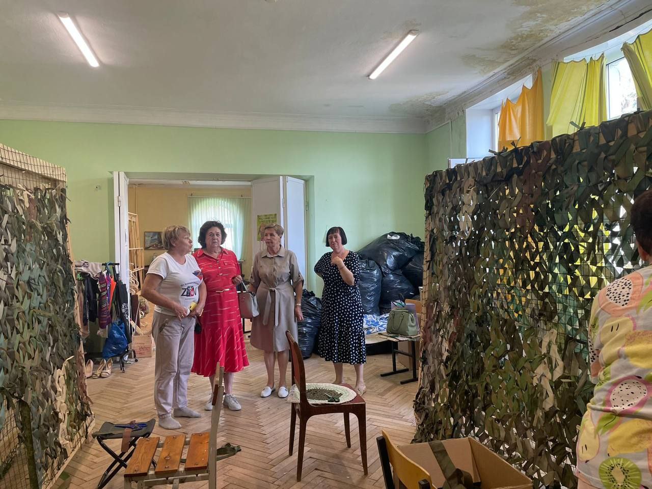 Объединение работает в городе с сентября 2022 года, в его составе более 10 человек, которые ежедневно плетут маскировочные сети, изготавливают блиндажные свечи, сухой душ, помогают в сборе гуманитарной помощи для военных.