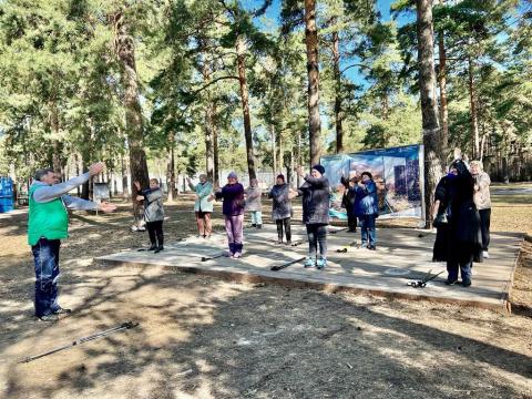 Для жителей старшего поколения Котельников провели занятие по скандинавской ходьбе