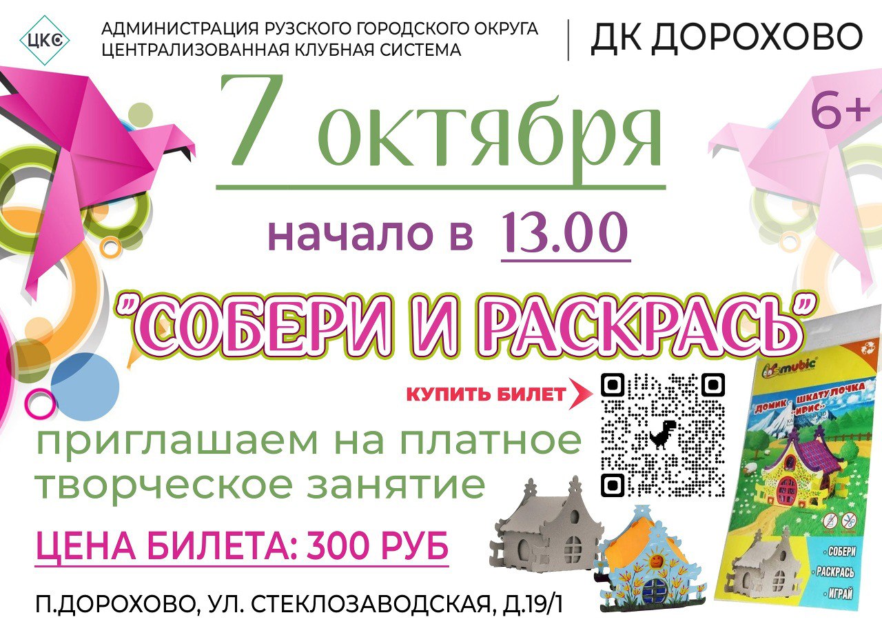 7 октября в Дороховском доме культуры Рузского городского округа состоится творческое занятие "Собери и раскрась".
