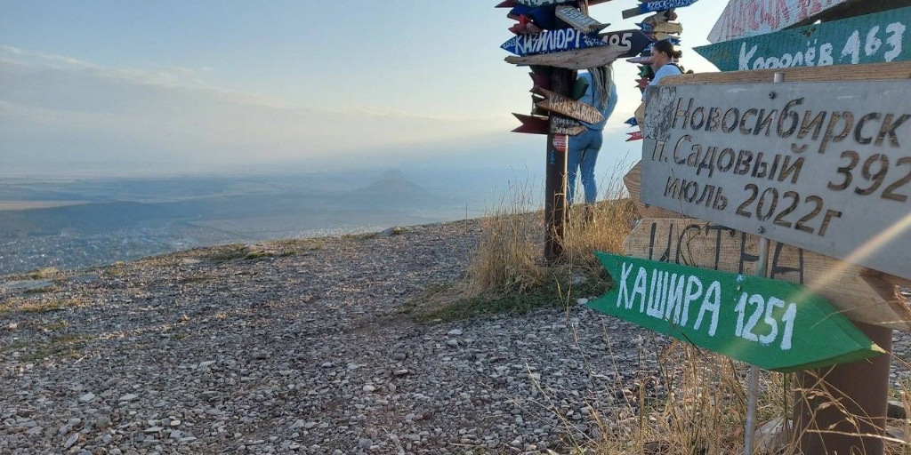На вершинном плато горы Машук установлены столбики с деревянными стрелками, где написано расстояние от этого места до разных населенных пунктов. Теперь благодаря Дмитрию есть «указатель» и до Каширы.