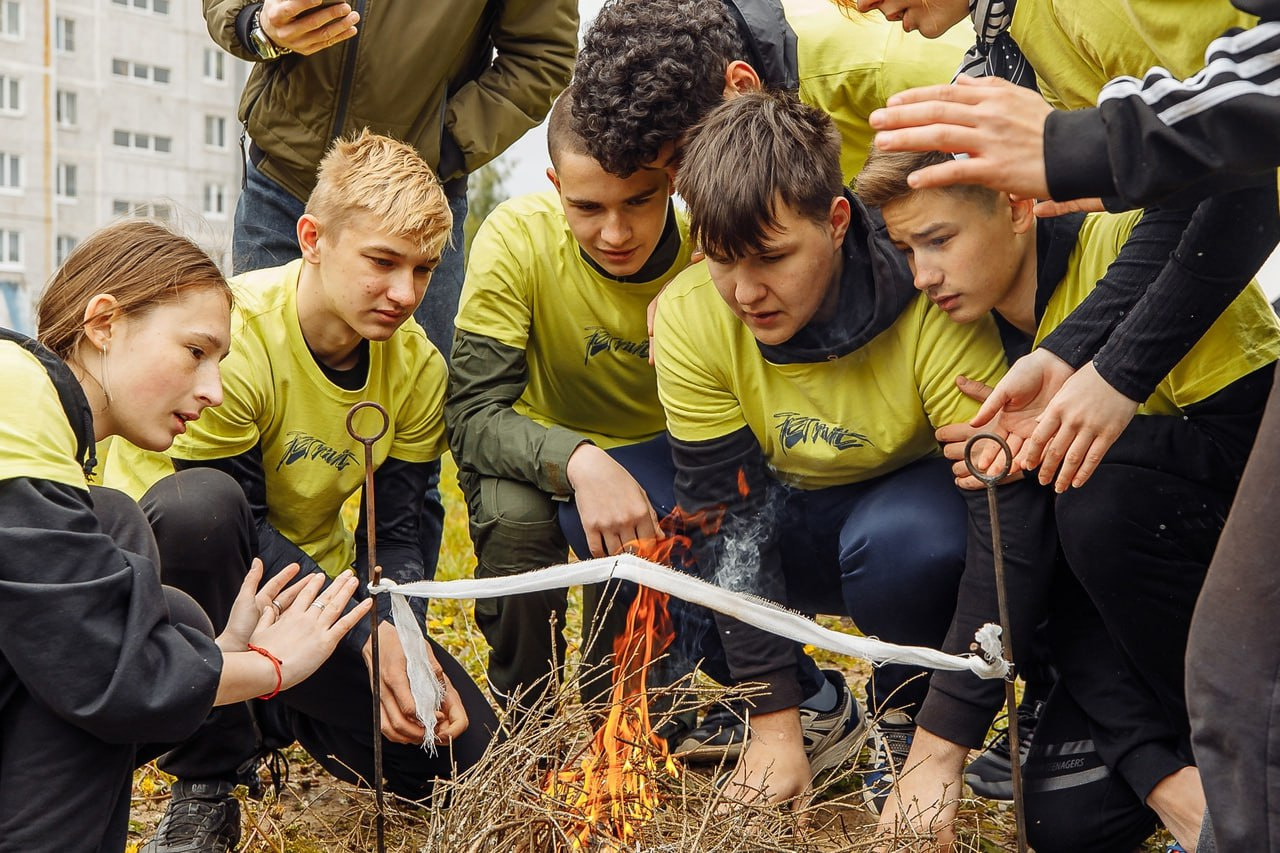 Пресс для девочек, отжимания — для мальчиков — проверка физической подготовки. Установка туристической палатки, разжигание и тушение костра подручными средствами, оказание первой медицинской помощи.