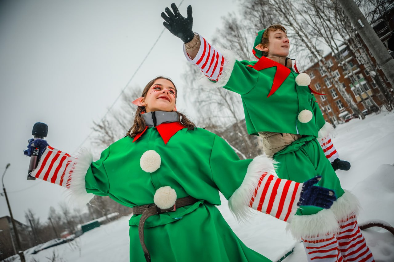 Во дворах и на общественных пространствах сказочные герои устраивают красочные представления, танцуют и поют вместе с детворой. Дед Мороз со Снегурочкой поздравляют ребят с наступающим праздником и собирают письма с новогодними желаниями.