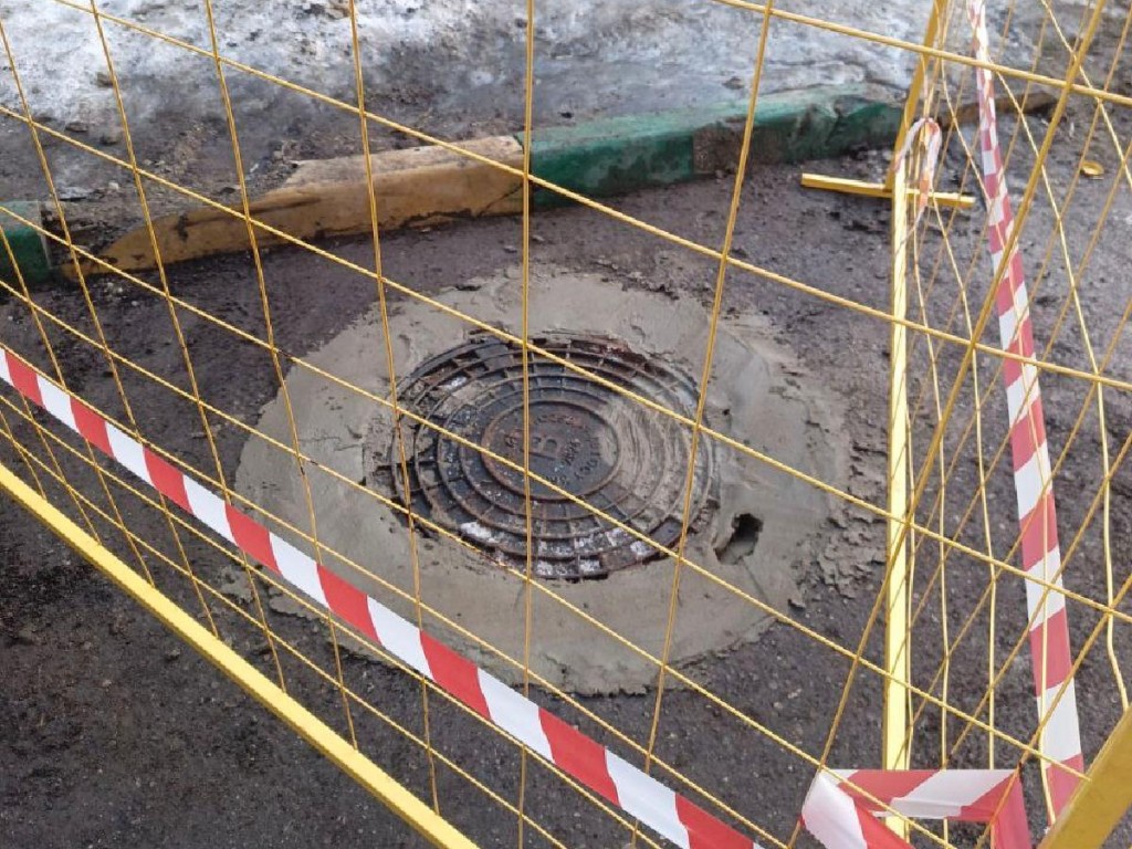 Разбитый канализационный люк восстановили в микрорайоне Супонево