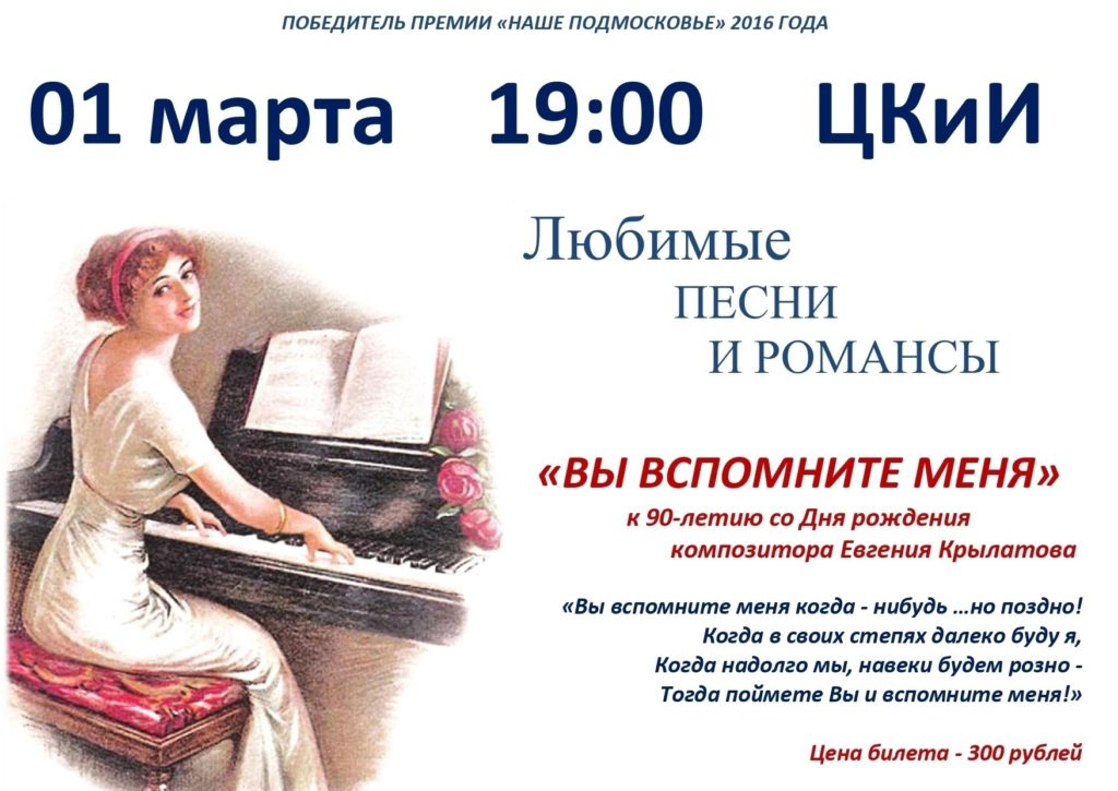 1 марта в Рузском центре культуры и искусств состоится программа «Любимые песни и романсы».