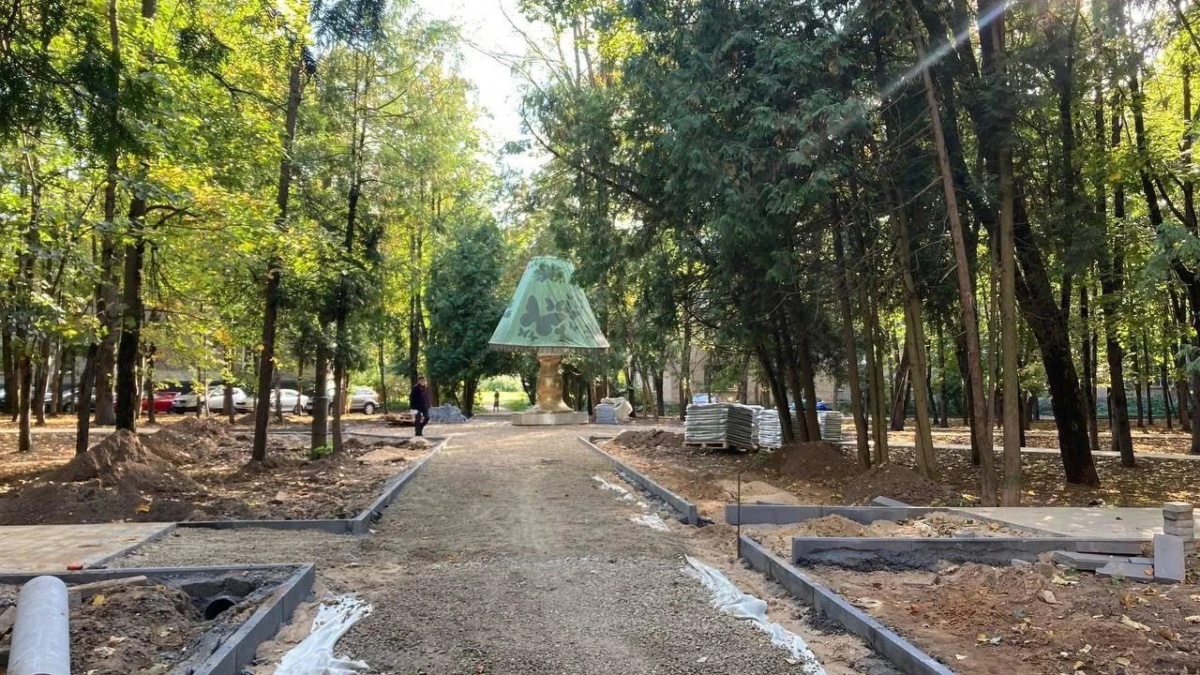 Сквер «У лампы» в поселке Селятино проводится благоустройство