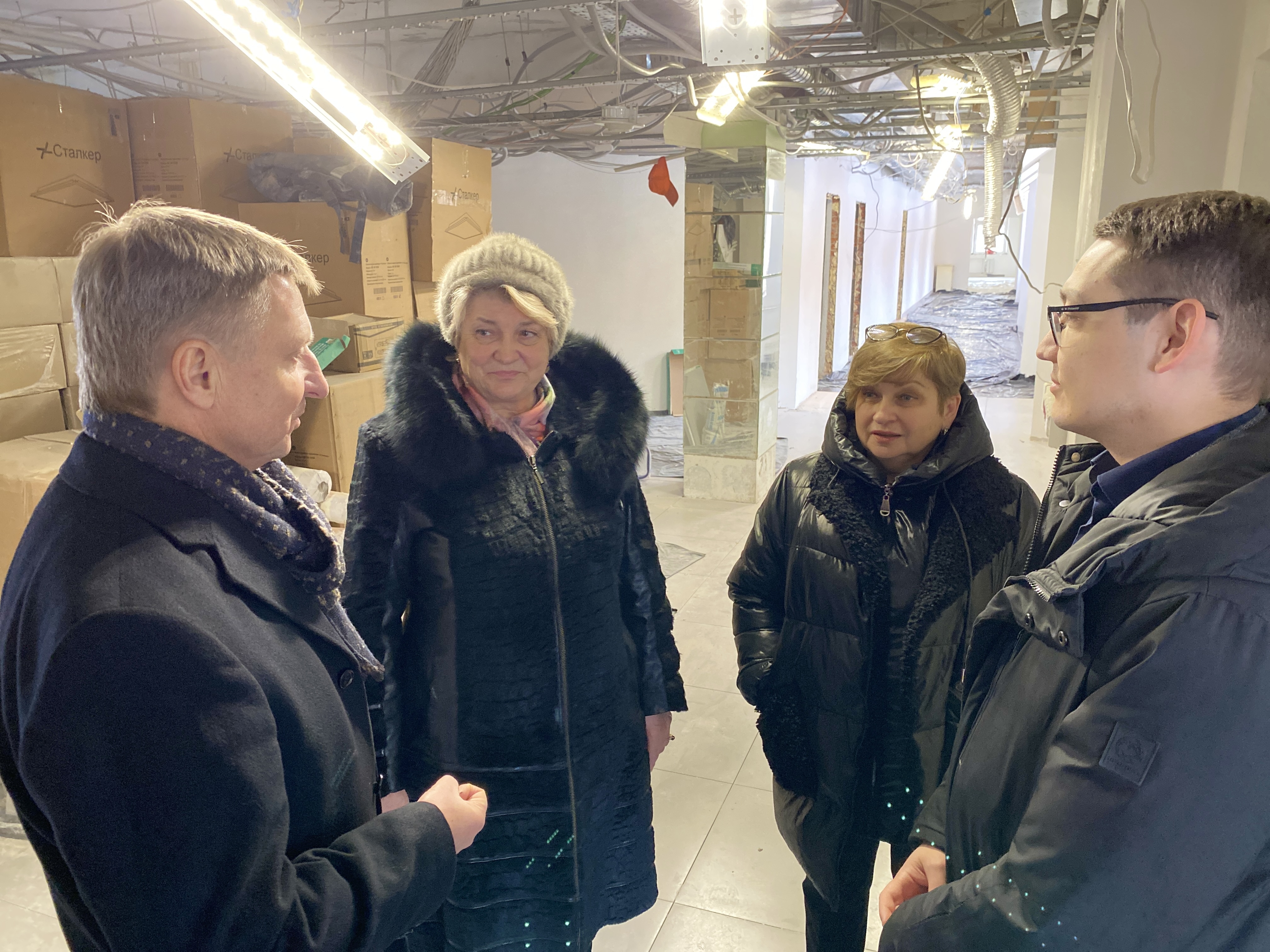 Депутат Мособлдумы, член фракции «Единая Россия» Владимир Жук, председатель Совета депутатов, руководитель партийной фракции Станислав Радченко, заместитель главного врача ВРКБ Тимур Асанов проверили ход работ в рамках проекта «Крепкая семья».