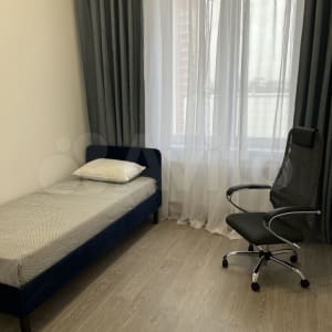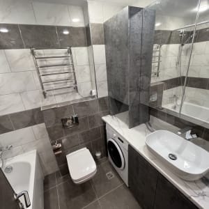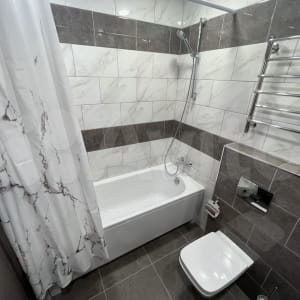 Санузел совместный, оборудован полноценной ванной, стиральной машиной, полотенцесушителем, также имеется достаточный объем места для хранения вещей. В большой комнате располагается двуспальная кровать с новым ортопедическим матрасом и подушками, большой вместительный шкаф, рабочий стол и удобное кресло. Во второй комнате - односпальная кровать с ортопедическим матрасом и подушкой, удобное кресло для работы или учебы, также ожидается доставка вместительного шкафа и рабочего стола.