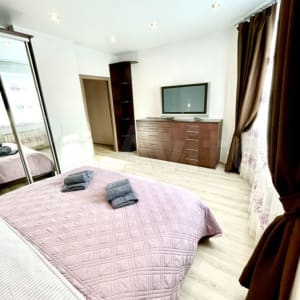 ✅ спальня с большой удобной кроватью и с телевизором с плоским экраном,